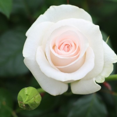 Роза Акито начинает цвести с июня, и её цветение повторяется. Сначала на кустах формируются плотные белые бутоны классической формы, а затем из них развиваются пышные и красивые цветки.
